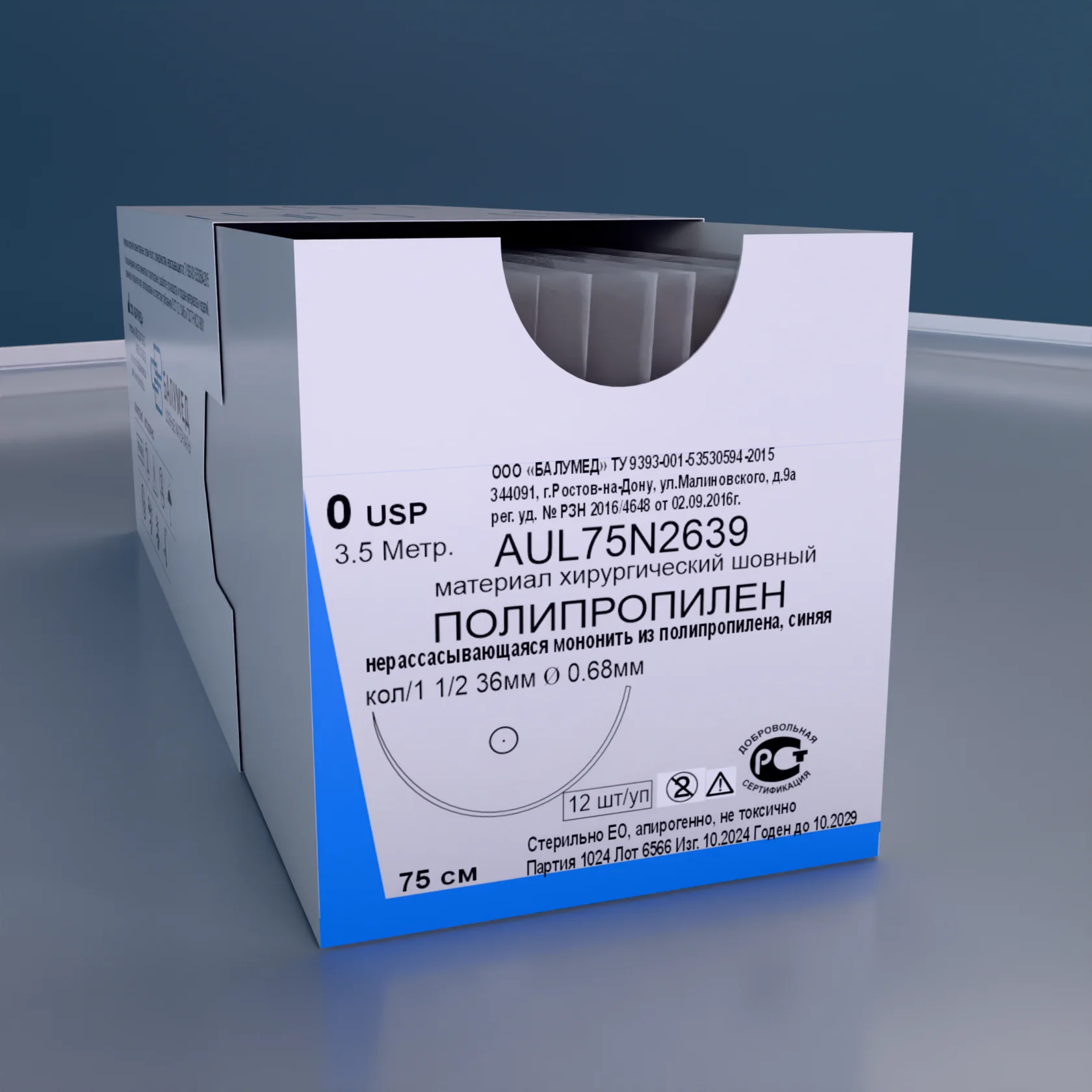 ПОЛИПРОПИЛЕН, Балумед, мононить USP 1, игла колющая 40мм, 75см.
