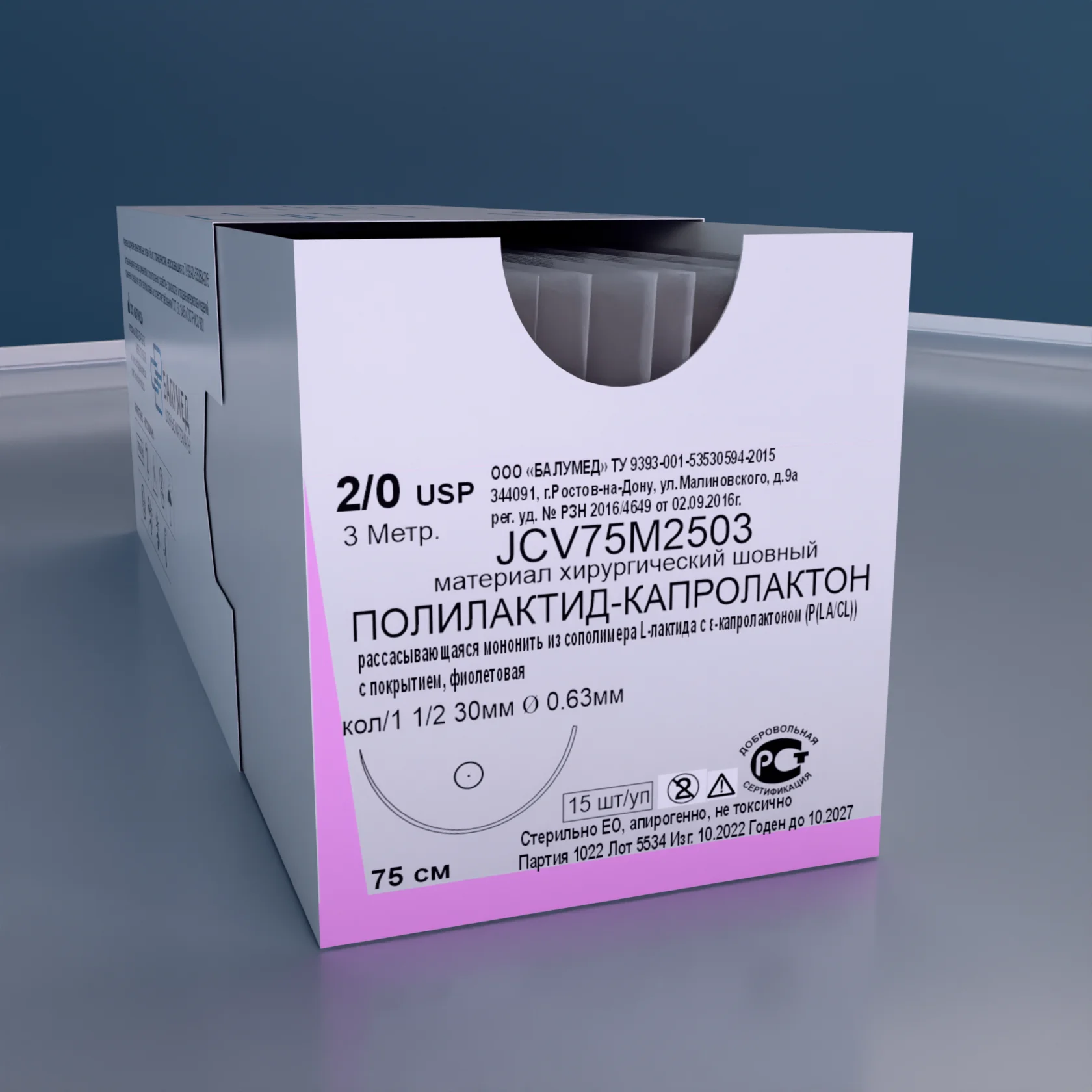 -Состав и структура: Мононить из сополимера L-лактида с ε-капролактоном, с покрытием.