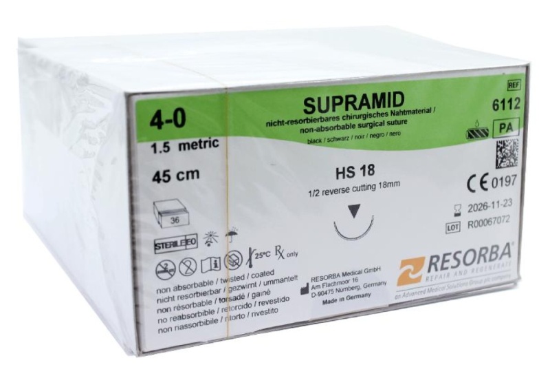 Все описание SupraMid (СупраМид) - это синтетическая нерассасывающаяся монофиламентная нить. Полиамидный материал, произведенный в результате поликонденсации аминокапроновой кислоты.