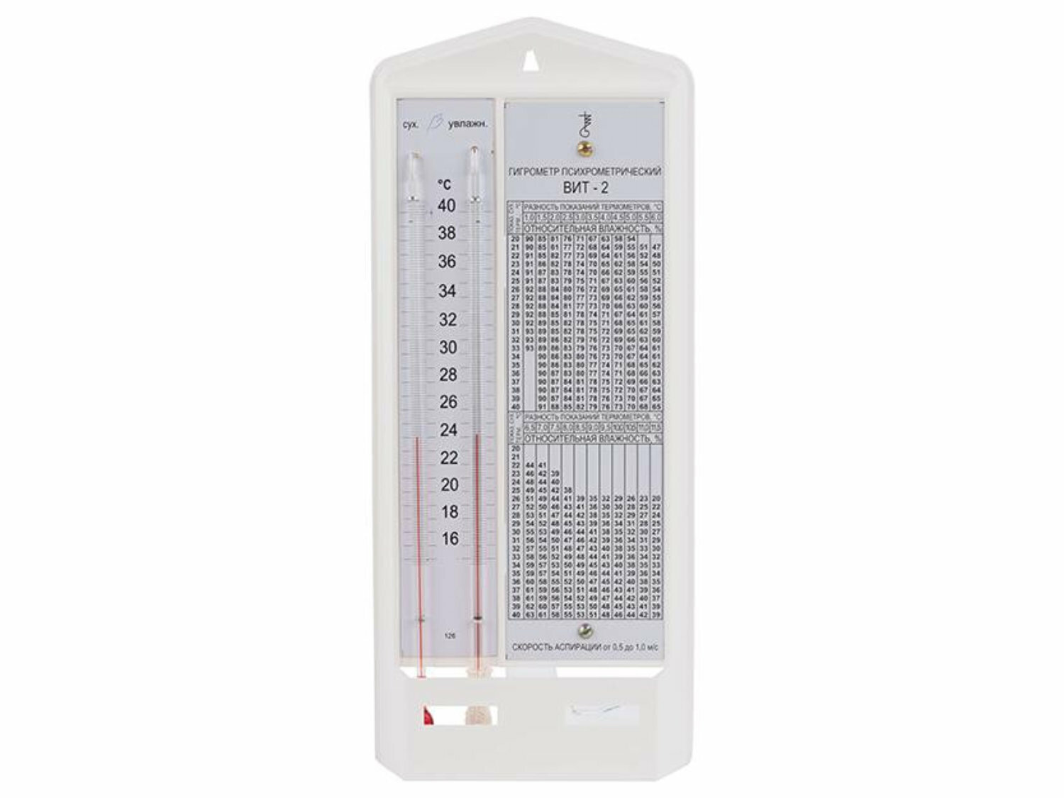 ВИТ-2 - это прибор, использующийся в различных помещениях (аптеки, склады, медучреждения и т.п.) для измерения влажности воздуха в процентах (%) (диапазон измерения от 20 до 90 %) и его температуры (диапазон от 15 до 40 °С).