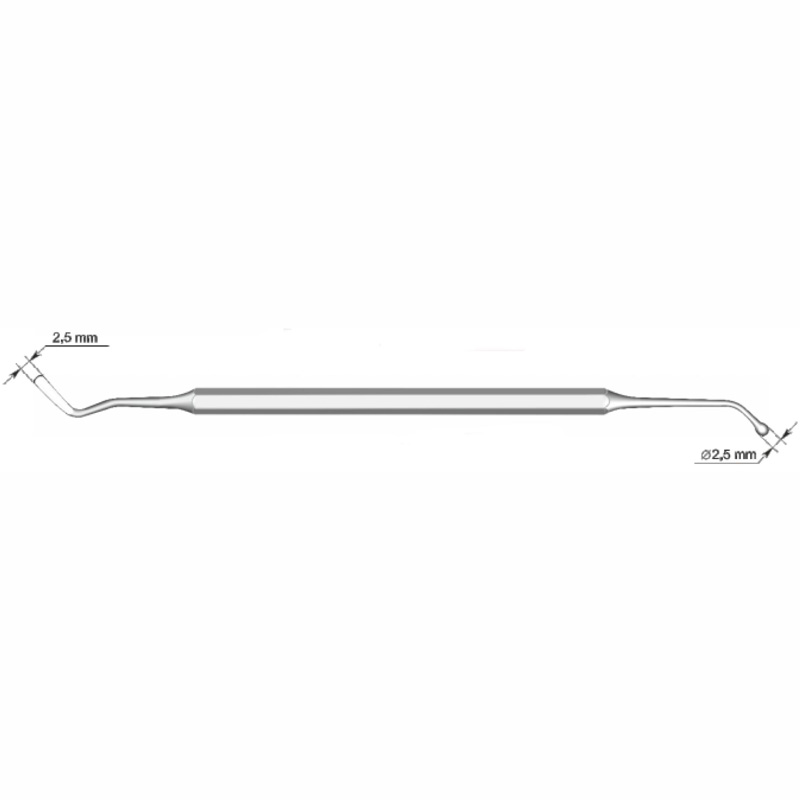 Первая рабочая часть имеет грушевидное окончание, расположенное относительно ручки под углом 40°. Диаметр грушевидной рабочей части — 2,6 мм.