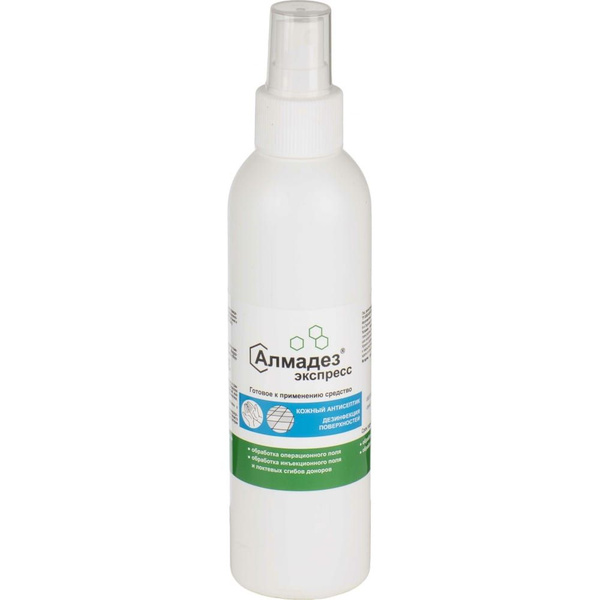 Все описание Антисептическое средство Алмадез-Экспресс представляет собой готовую к применению прозрачную бесцветную жидкость со специфическим запахом изопропилового спирта без посторонних механических включений. Предназначено для обработки кожного покрова и дезинфекции небольших по площади поверхностей. Средство быстро высыхает, не оставляя следов на поверхностях. Пролонгированное действие не менее 3 часов. В рекомендованных режимах применения местно-раздражающие, кожно-резорбтивные и сенсибилизирующие свойства средства не выражены. Средство обладает слабым раздражающим действием на слизистые оболочки глаза. Следует избегать попадания средства в глаза и на слизистые.