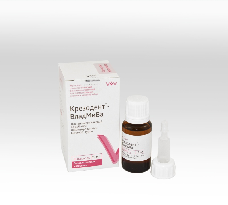 Жидкость «Крезодент-ВладМиВа» широко применяется при эндодонтических вмешательствах в качестве активного антисептика местного действия. Препарат представляет собой жидкость, содержащую в своем составе: