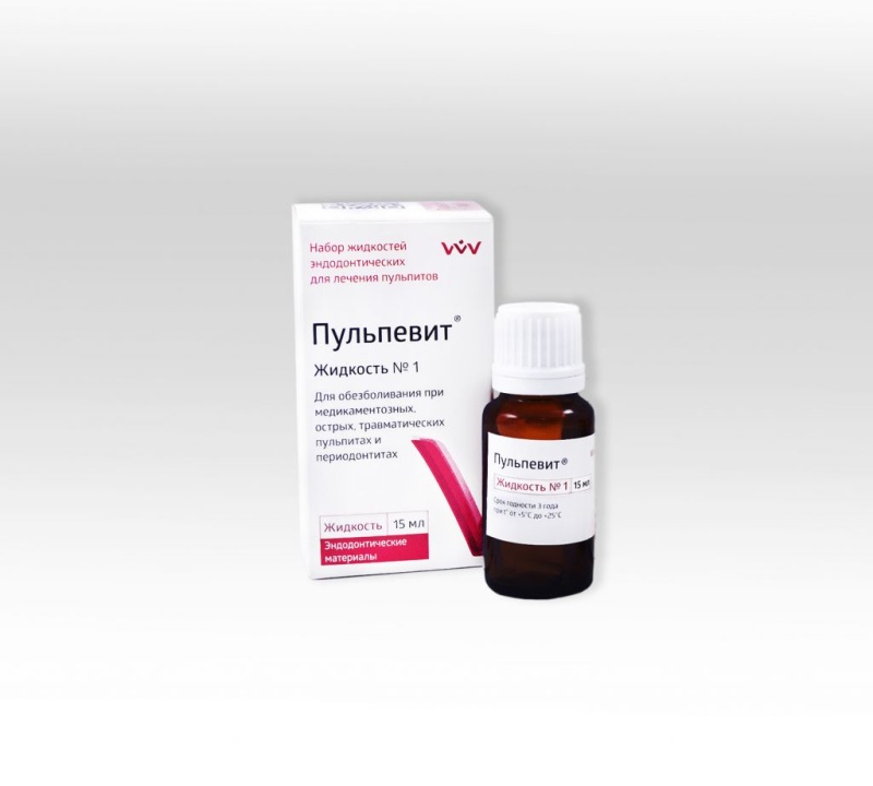 Жидкость №1 предназначена для обезболивания при медикаментозных или травматических пульпитах и периодонтитах, при острых пульпитах перед применением мышьяковой пасты.