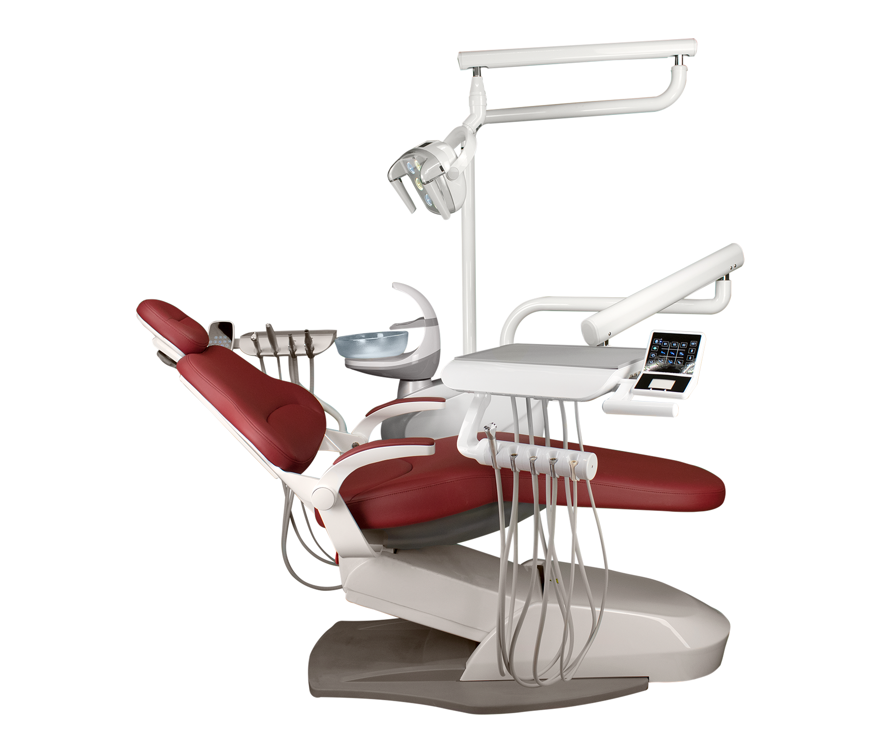 Дополнительный опции: мотор воздушный с прямым и угловым наконечником, турбинный наконечник с генератором света, электрический микромотор со светом.