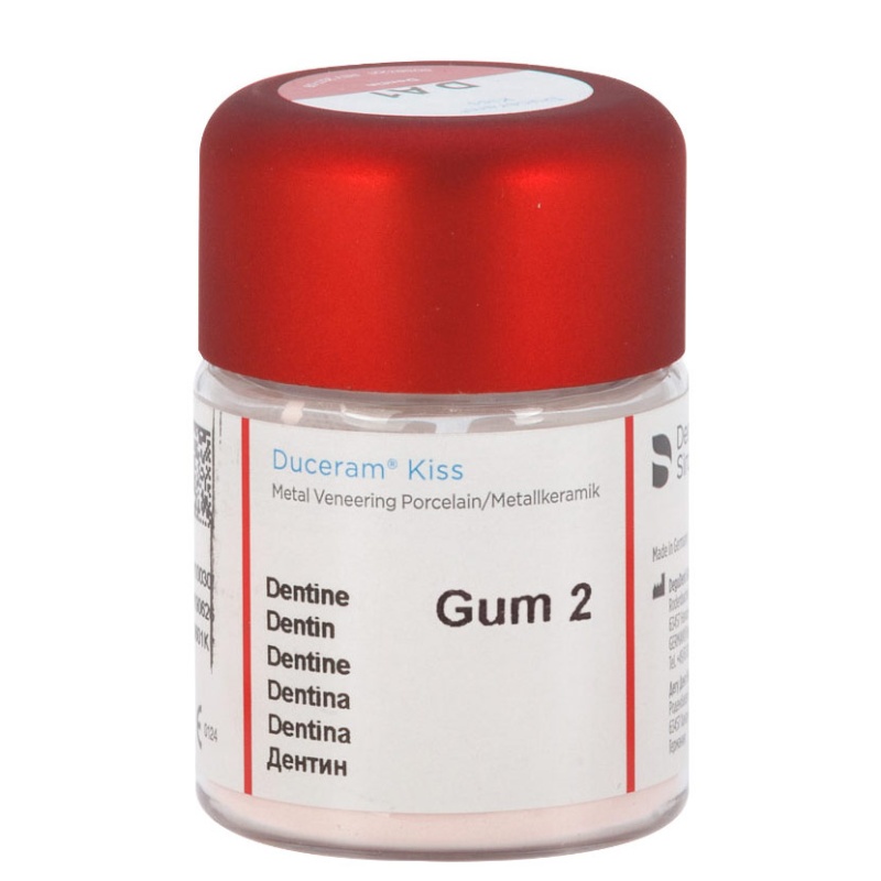 Все описание Duceram Kiss Gum десневой дентин, цвет Gum2, 20 г, керамические массы для формирования десны, например, для супраконструкций в имплантологии.