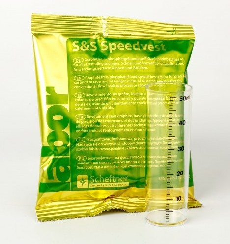 Порошок для шоковой высокоточной паковочной массы, изготовленной на основе фосфата и силиката, без содержания графита.