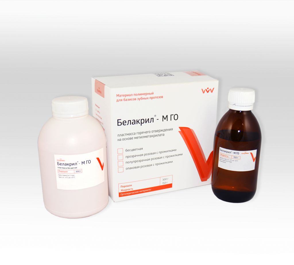 Все описание Базисные материалы «Белакрил» выпускаются в виде двух компонентов - порошка, содержащего полиэфиры метакриловой кислоты, катализатор реакции полимеризации перекись бензоила, и жидкости, содержащей мономер метилметакрилат (М) и/или мономер этилметакрилат (Э), после смешивания порошка с жидкостью образуется полимер, твердеющий при нагревании (горячего отверждения) - ГО или без нагревания (самотвердеющий) - ХО. Базисные материалы «Белакрил» отличает высокая технологичность, простота и быстрота изготовления изделий, имеющих высокое качество, функциональную долговечность, натуральный внешний вид и биосовместимость.