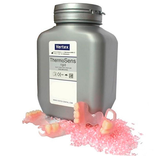 Все описание Vertex ThermoSens (Вертекс ТермоСенс) безмономерная пластмасса в гранулах, используется для изготовления и ремонта полных и частичных протезов. Данная пластмасса прекрасно подходит для изготовления съемных протезов пациентам с аллергией или гиперчувствительностью к обычным пластмассам.