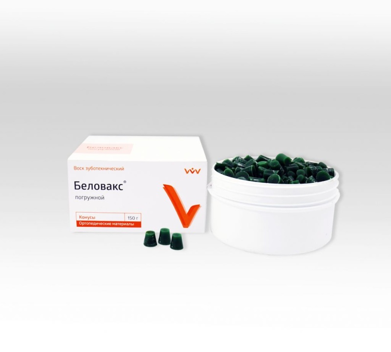 Воск «Беловакс» погружной представляет собой восковую композицию, позволяющую получить эластичный восковой колпачок с толщиной стенок 0,35 мм при длительности погружения в 1 секунду. Температура воска при погружении составляет 85 оС.