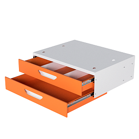 несущая рама и два одинаковых ящика с шариковыми направляющими, полностью металлическое исполнение;